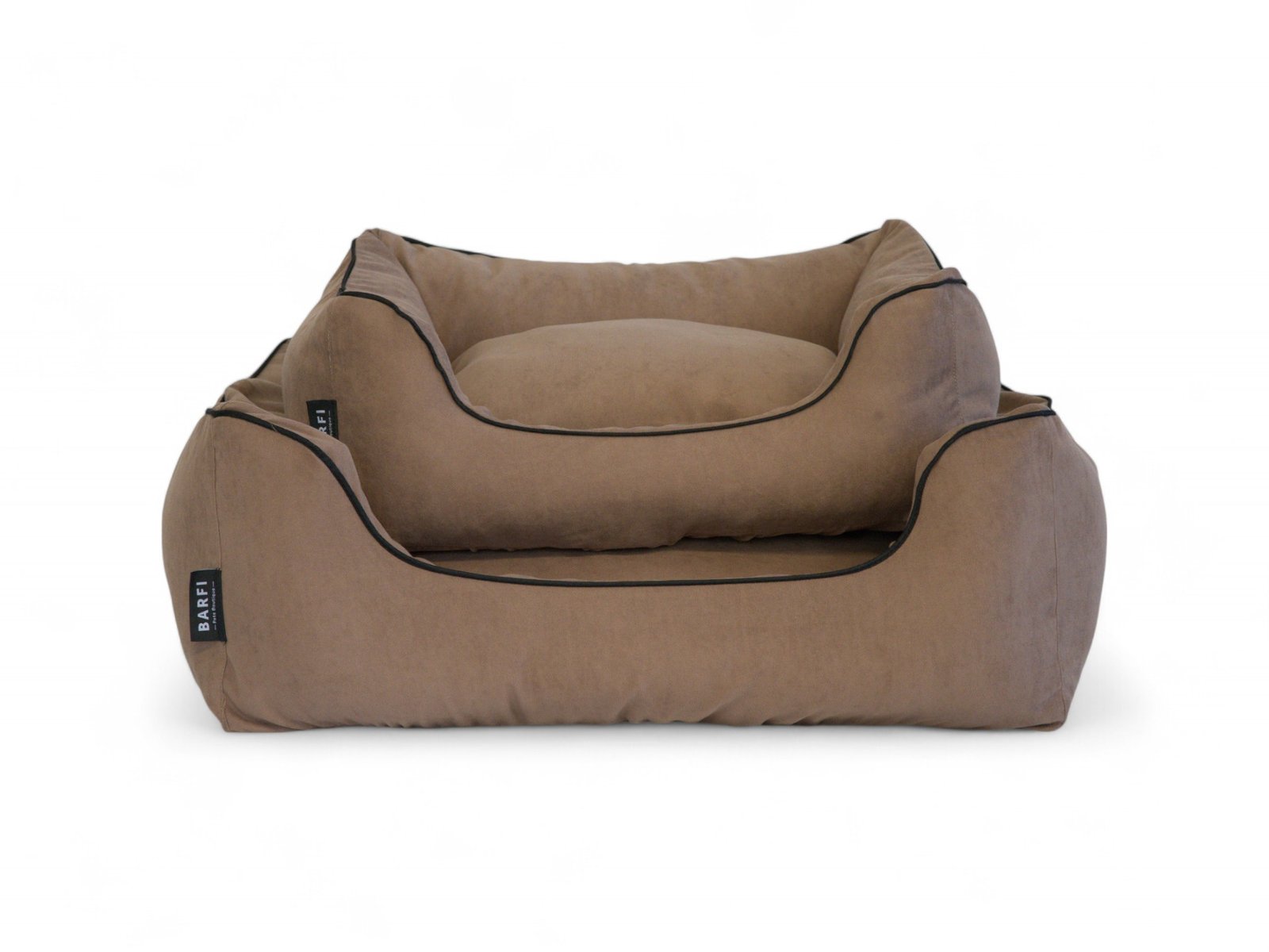 הבד במגע זמש מעניק תחושה קטיפתית ורכה, מה שהופך את פינת השינה של חיית המחמד לנעימה ומזמינה. המגע המלטף של הבד מסייע להקנות לחיית המחמד ביטחון ורגיעה, מה שמוביל לשיפור איכות השינה ולהתאוששות טובה יותר מיום פעיל.